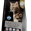 Bu nedenle Matisse Castrados Frango, kilo kontrolüne yardımcı olmak ve aynı zamanda daha yüksek protein içeriği ve eklenen karnitin sayesinde kas kütlesini korumak için formüle edilmiştir.